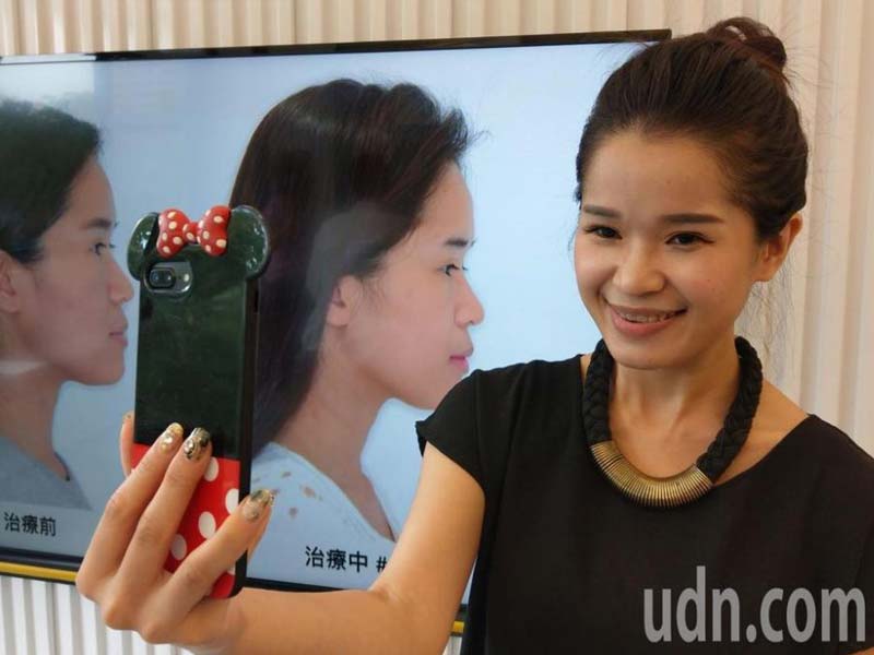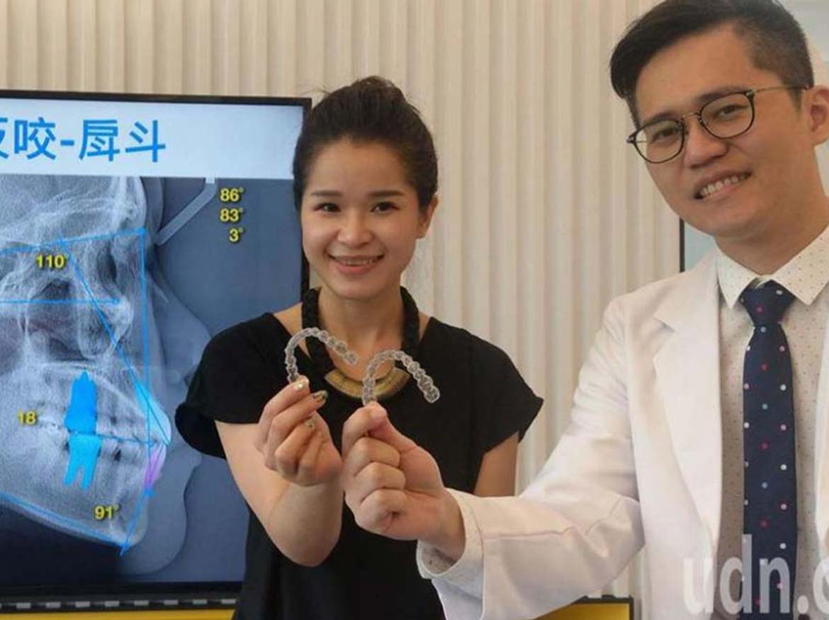 台中市31歲新娘祕書邱夢萍因戽斗、臉往右邊歪斜,長大後愈來愈明顯,她以為要動正顎手術,去年底存夠手術費用,經向台中市南屯區開業的齒顎矯正專科醫師陳易駿諮詢後,經接受隱形牙套矯正,臉形變「正」,可以拍美照,開心不已。